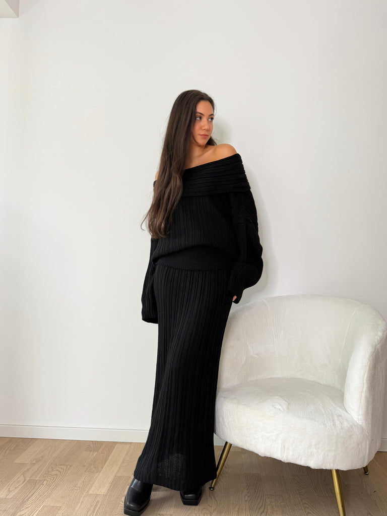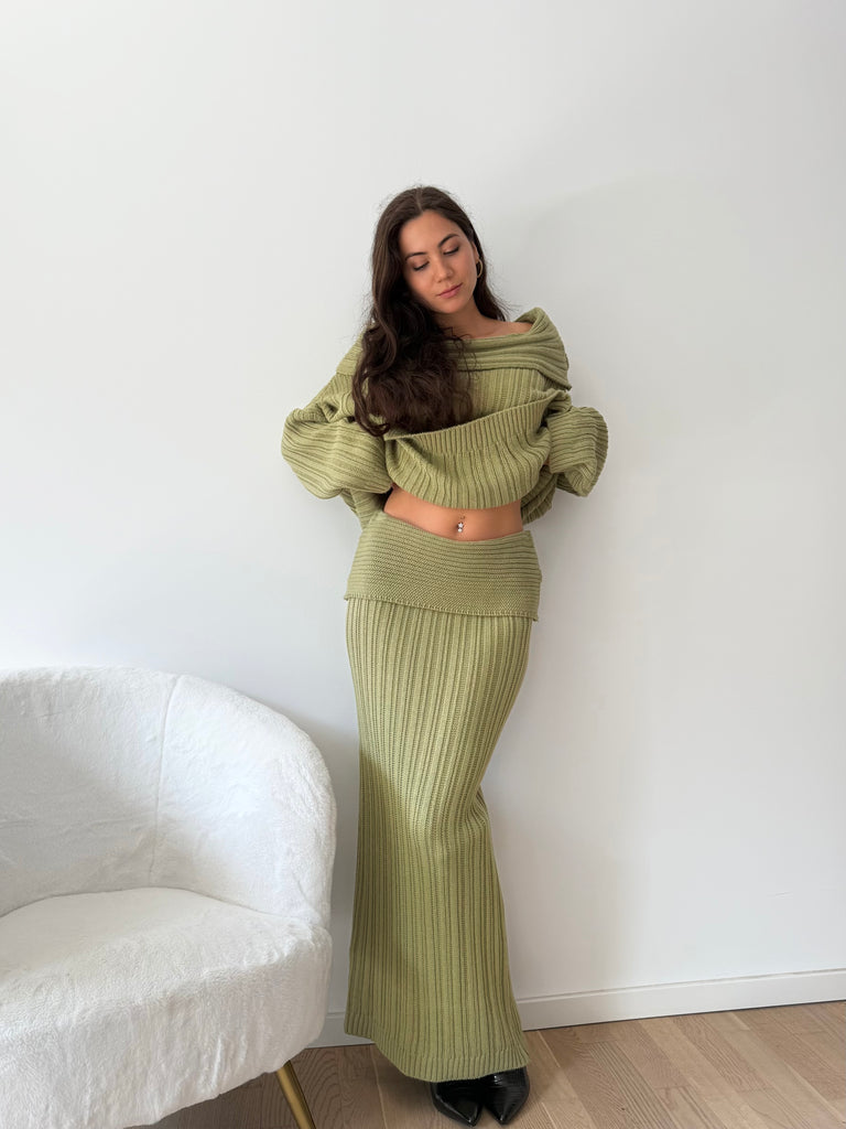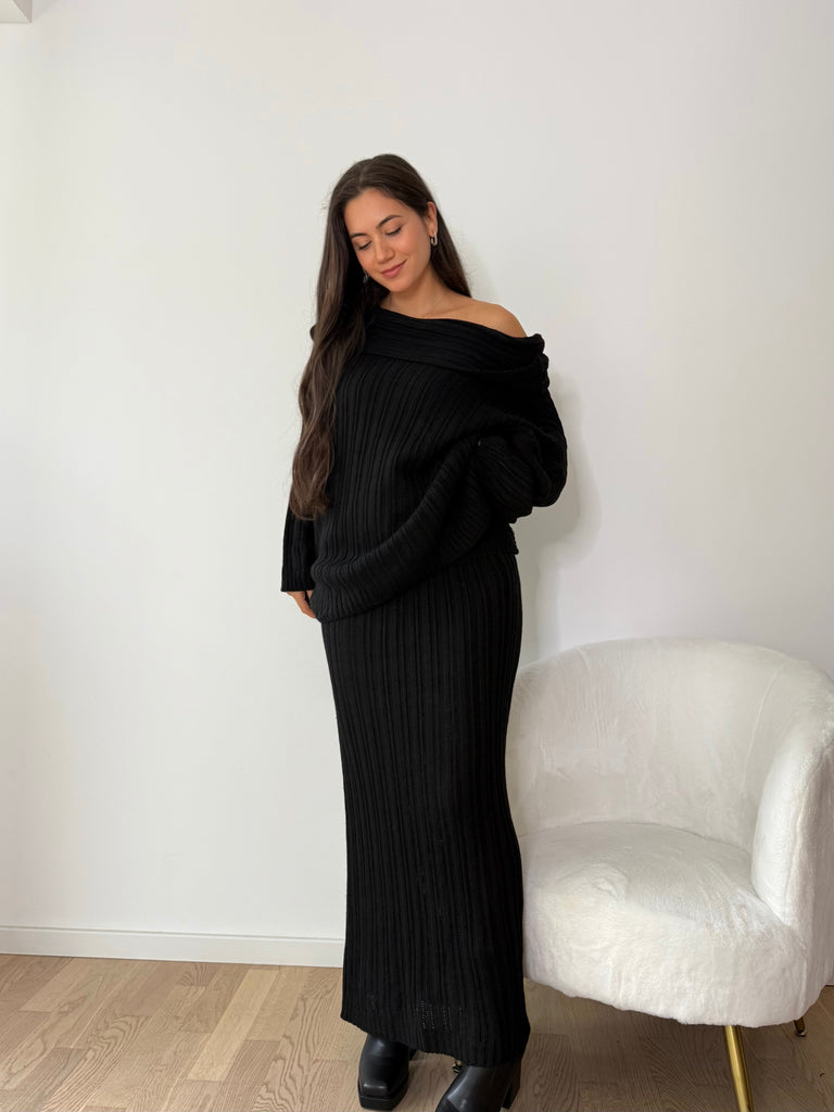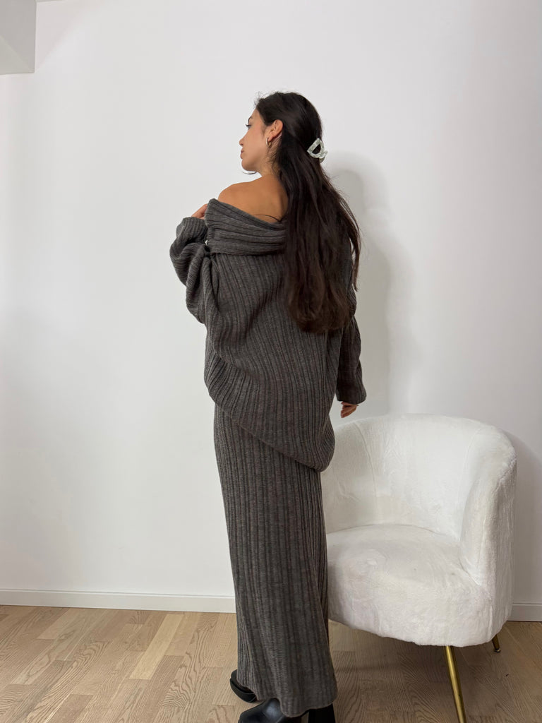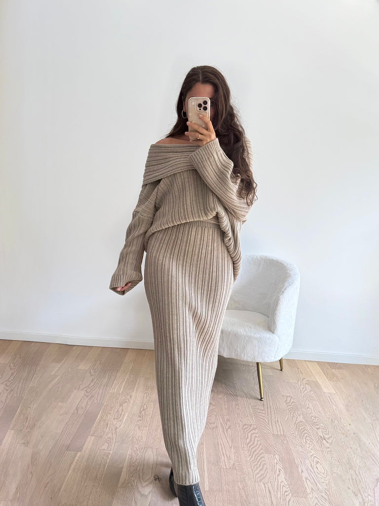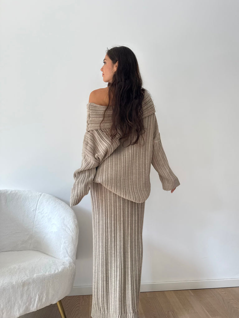 Strick-Zweiteiler aus langem Rock und Oversize Pullover