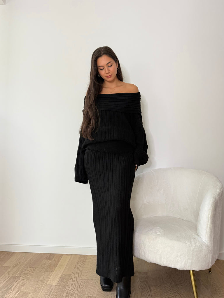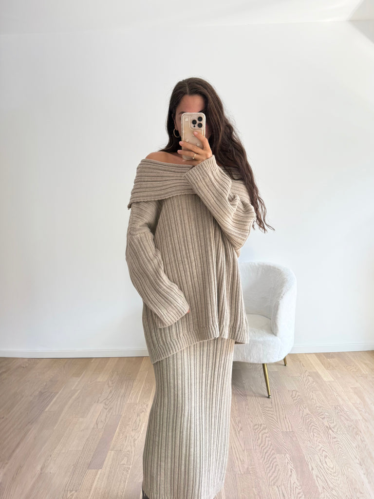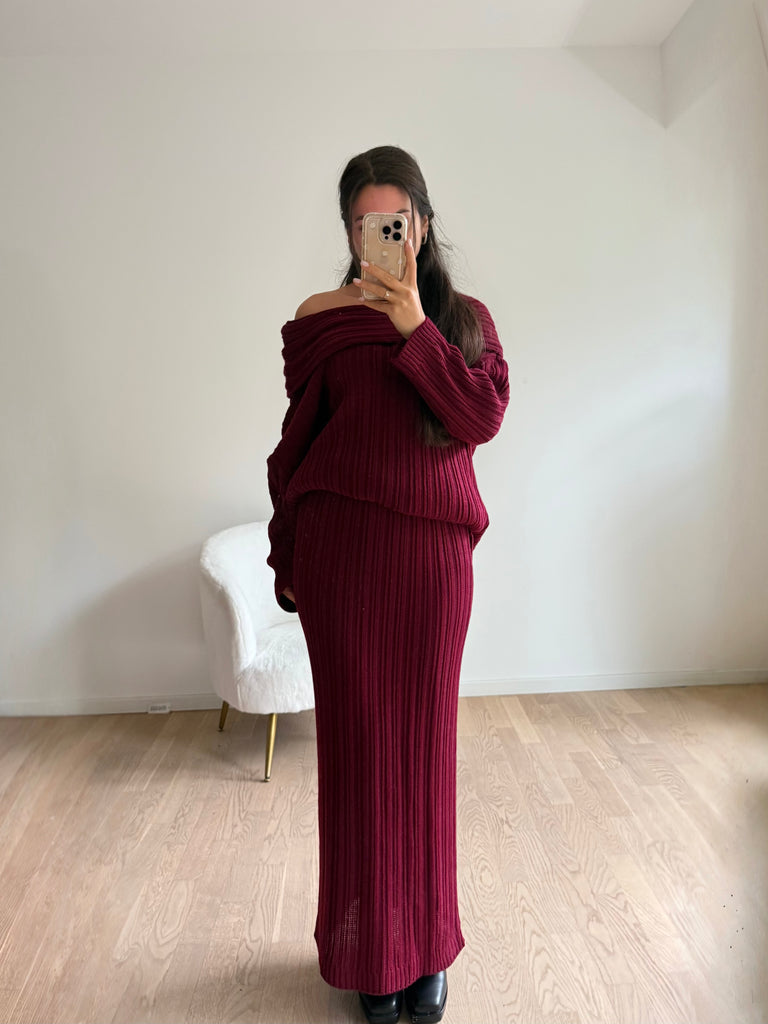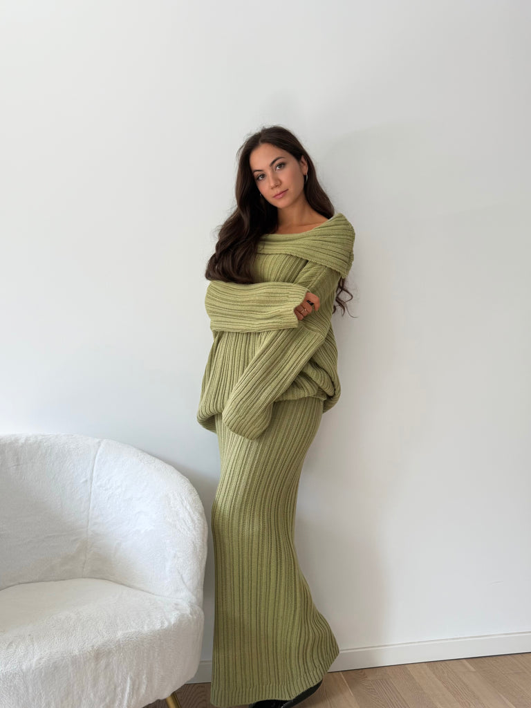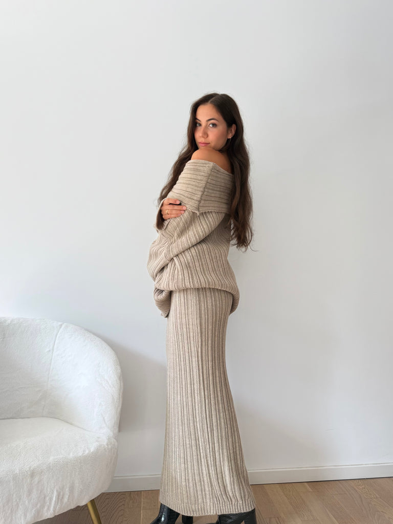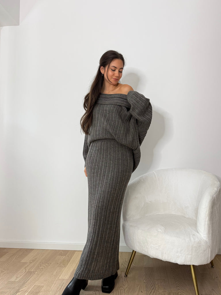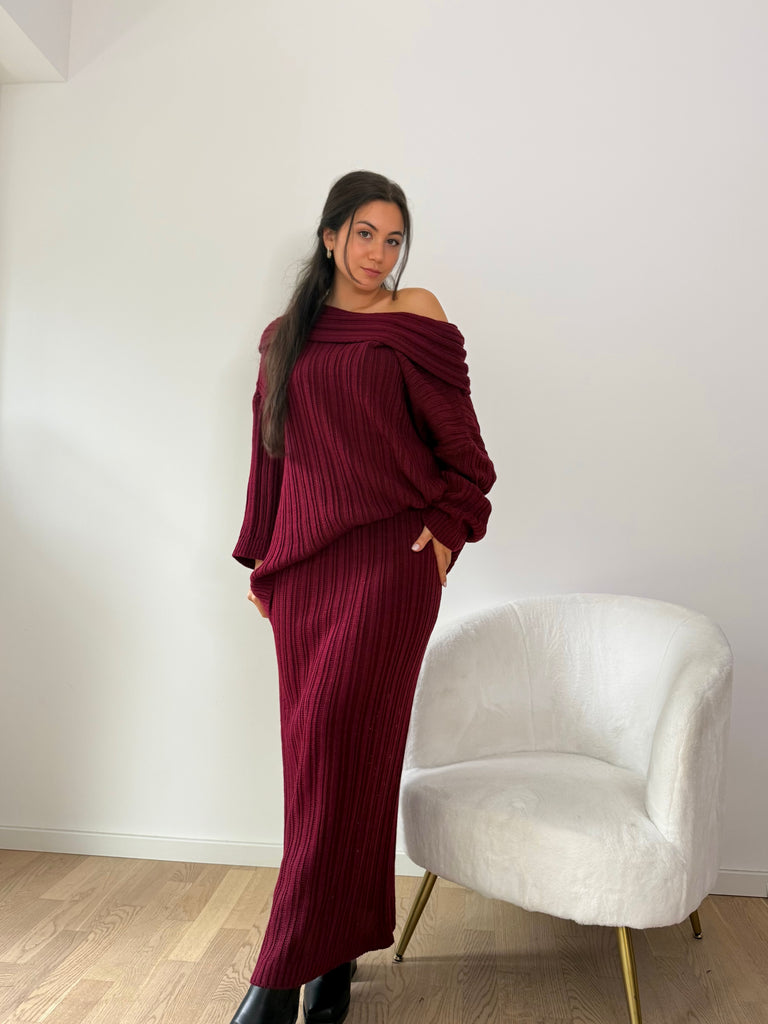Strick-Zweiteiler aus langem Rock und Oversize Pullover