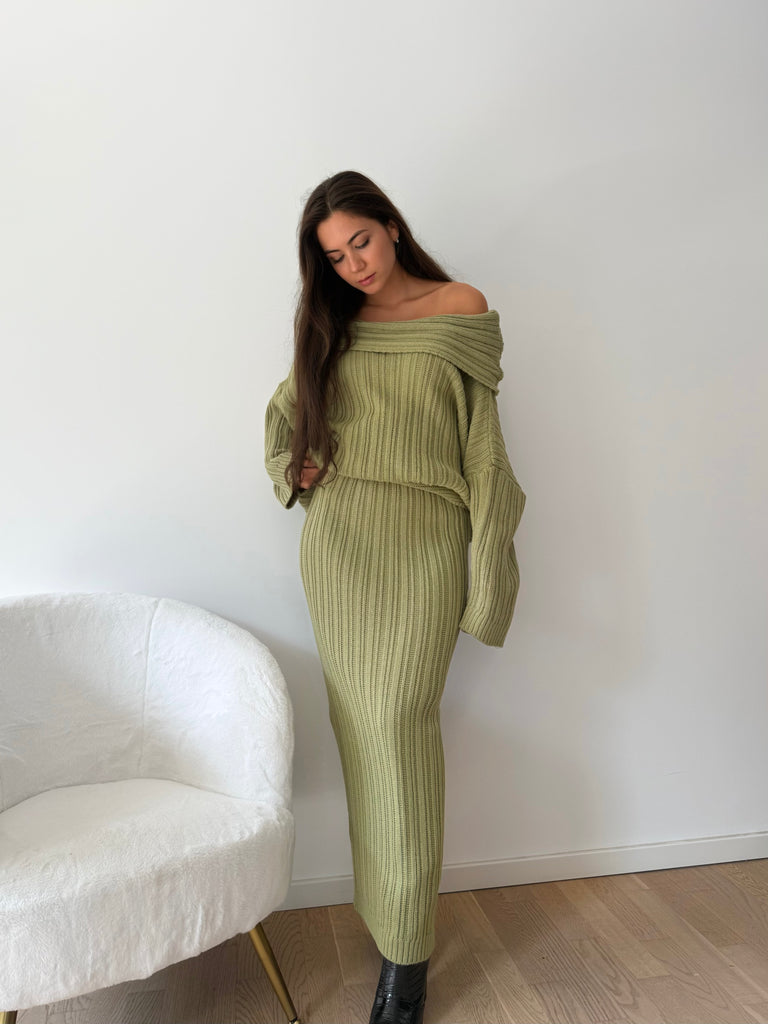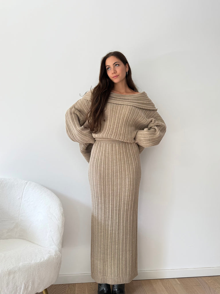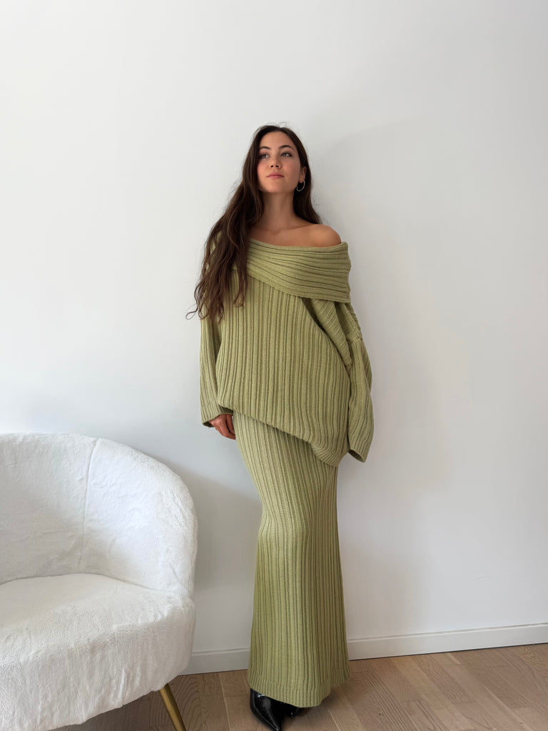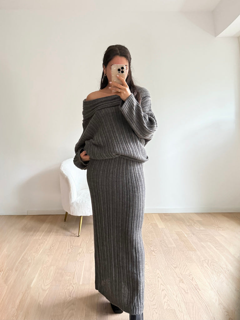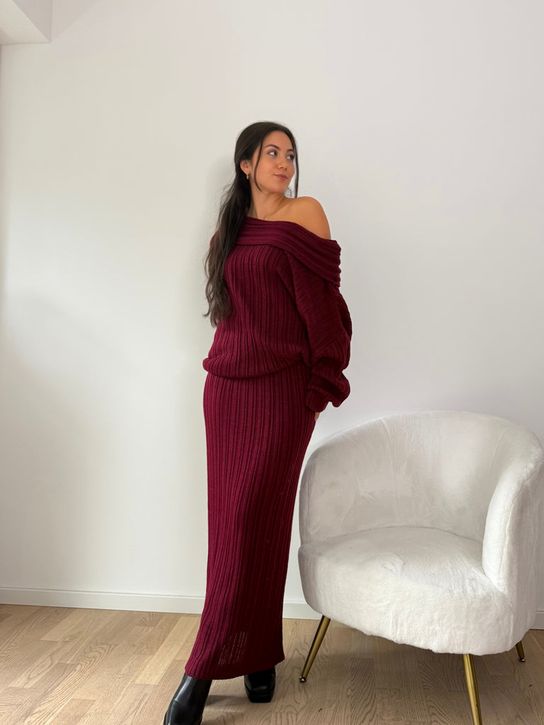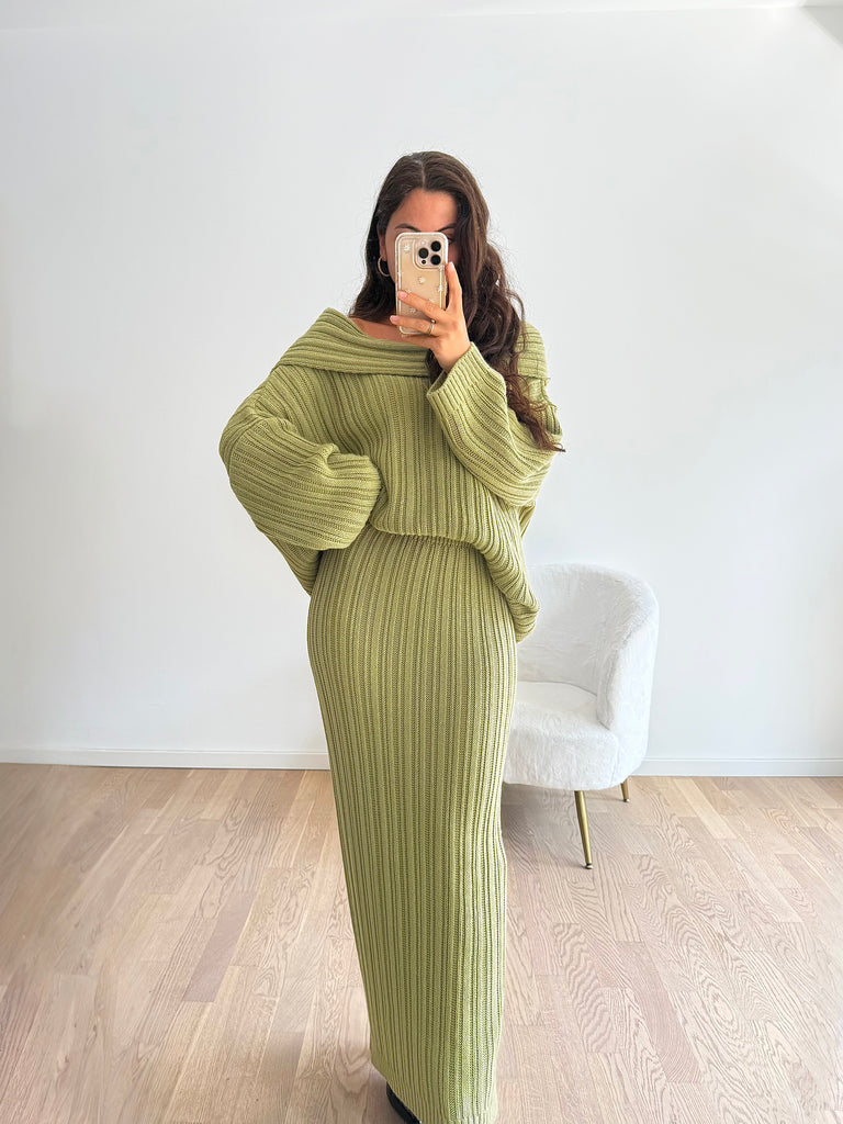 Strick-Zweiteiler aus langem Rock und Oversize Pullover